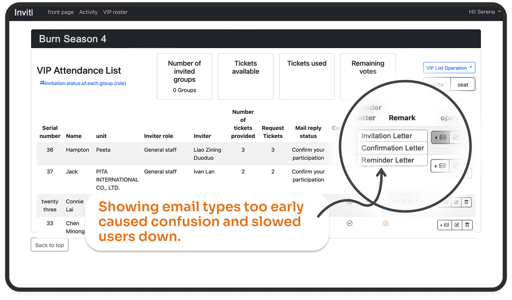 Confusing flows led to mistakes and extra work to fix invite lists.