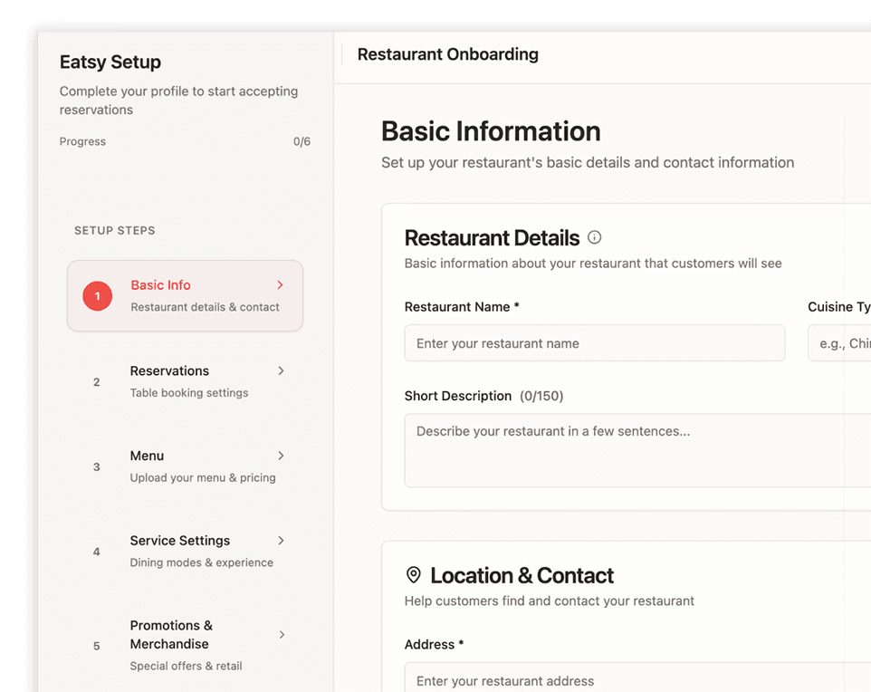 B2B2C Platform · Restaurant Onboarding